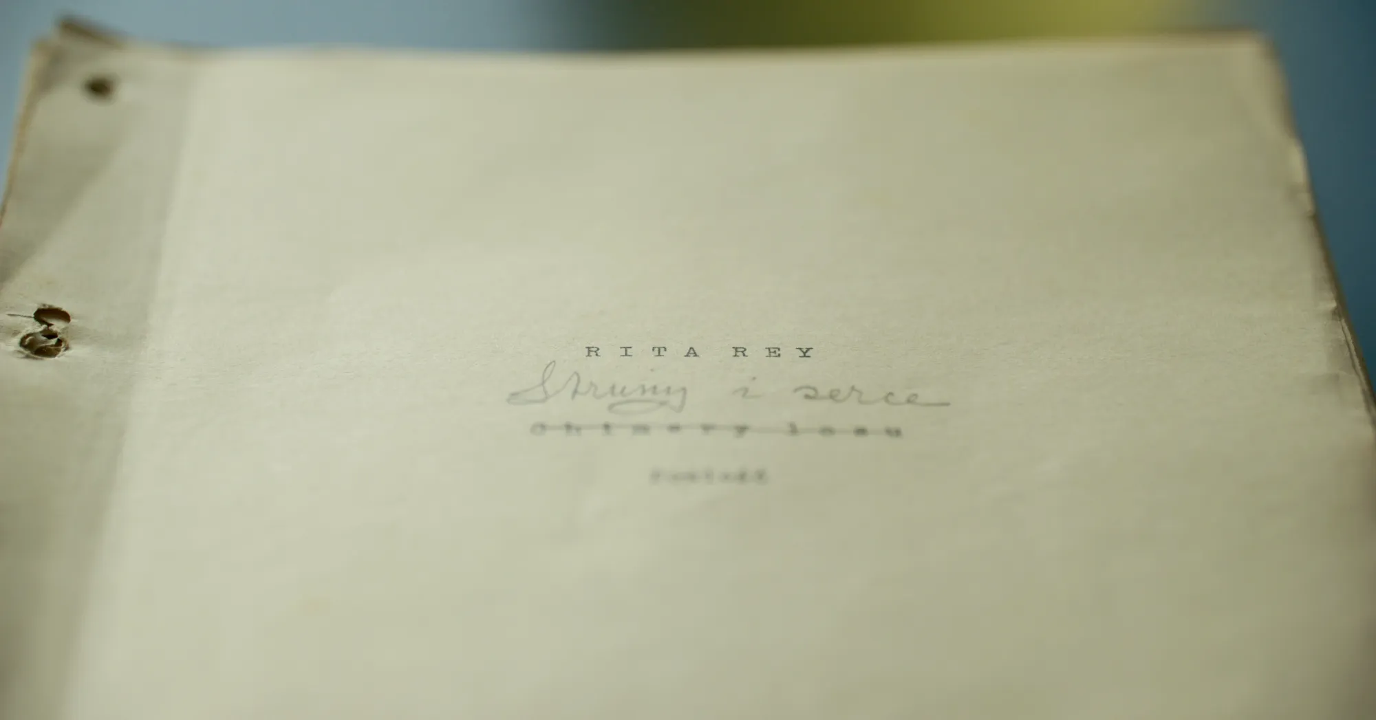 The manuscript Marta had found was in remarkable condition, given its age. Slightly faded, certainly, but remarkably well kept. An incredible relic from a long-forgotten era. And there, in the middle of our near-perfectly-kept front page, the author's name. Rita Rey.